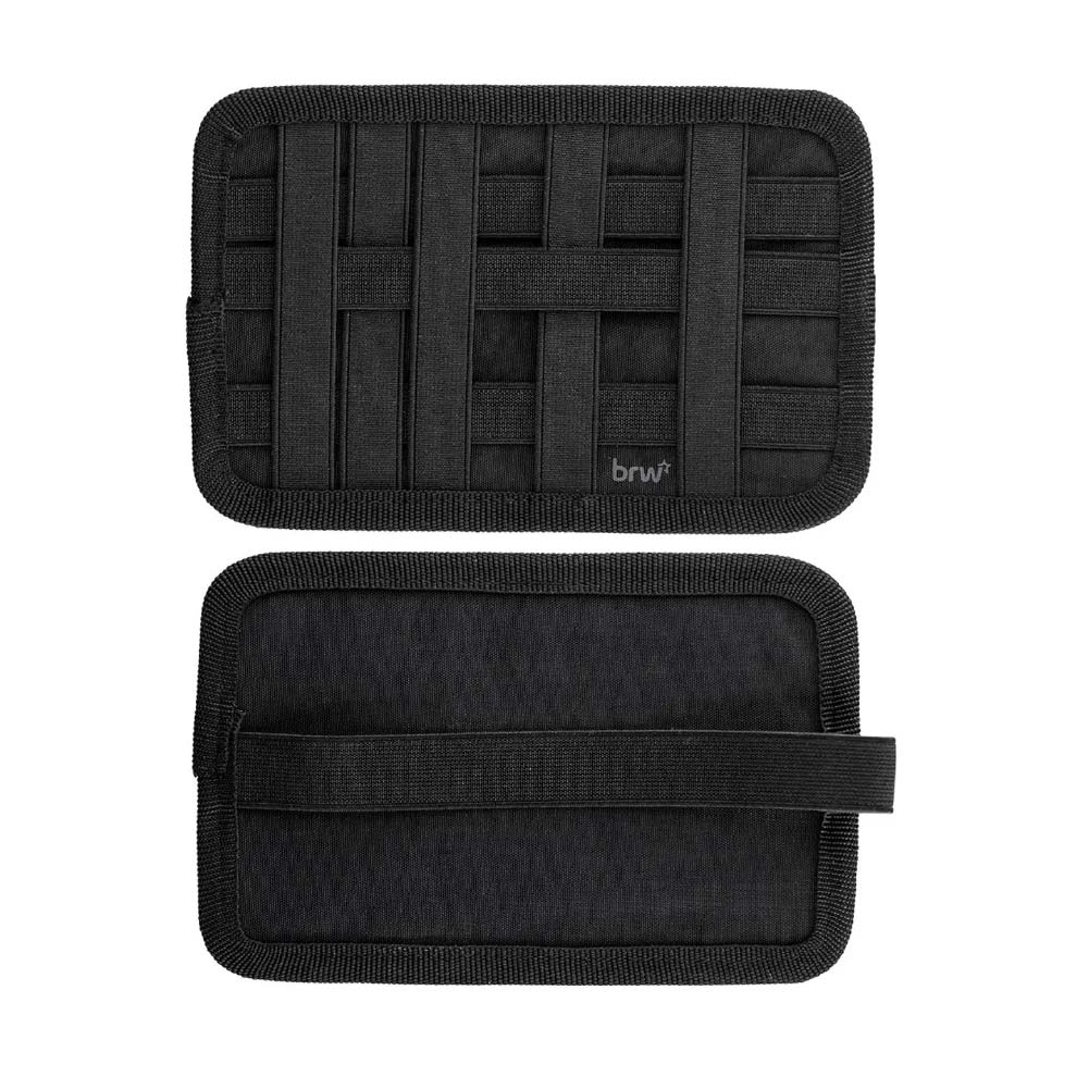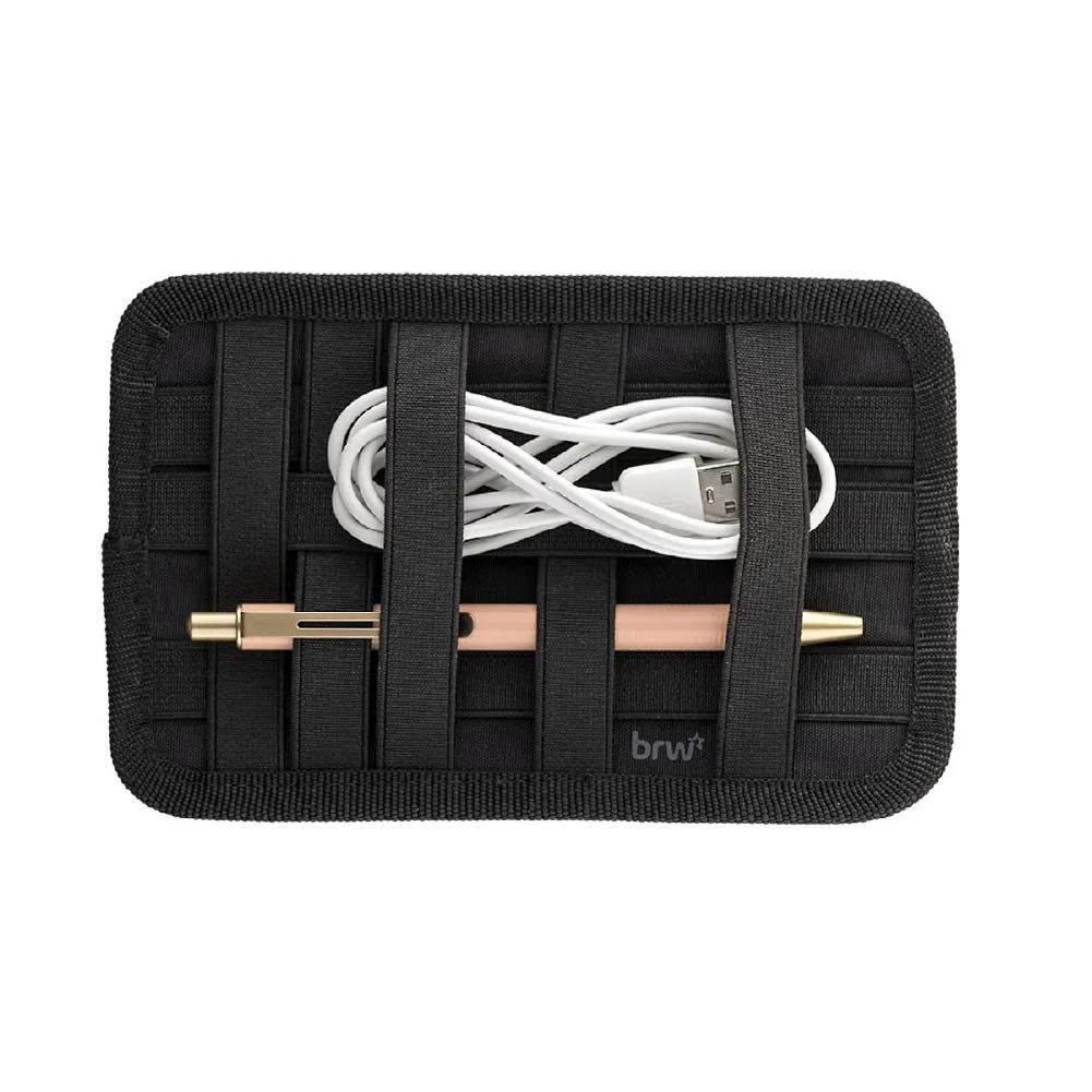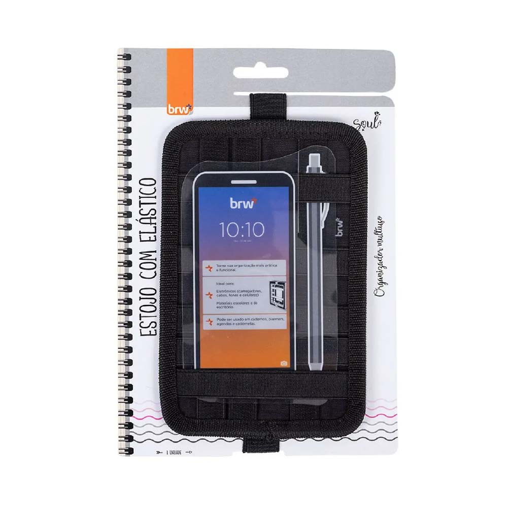 - BRW-ET-0162 – Estuche de nylon multi elástico | Banda elástica con ajuste para cuadernos y agendas A5 | Porta celular, audífonos, lápiz y bolígrafo | Color: negro | 1 unidad.